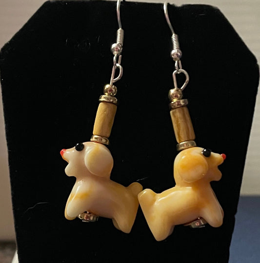 Beige Glass Dog Earrings
