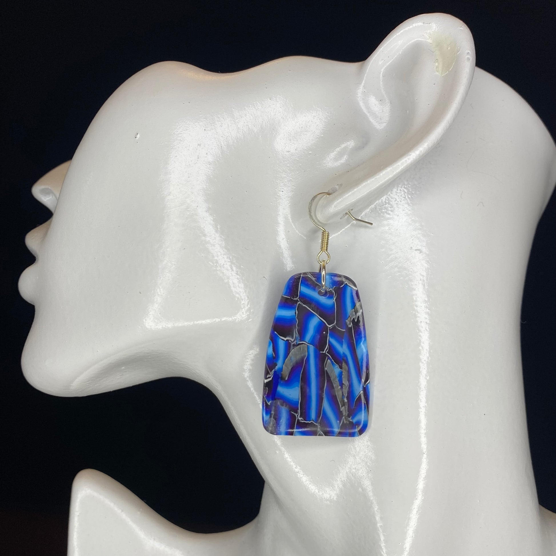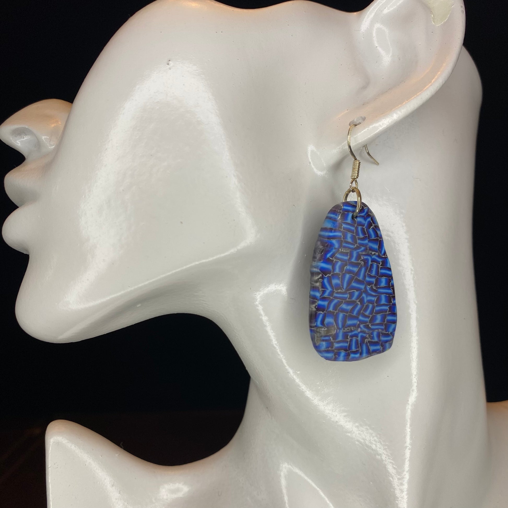 Handmade basketweave earrings designed with beautiful black and blue pattern.